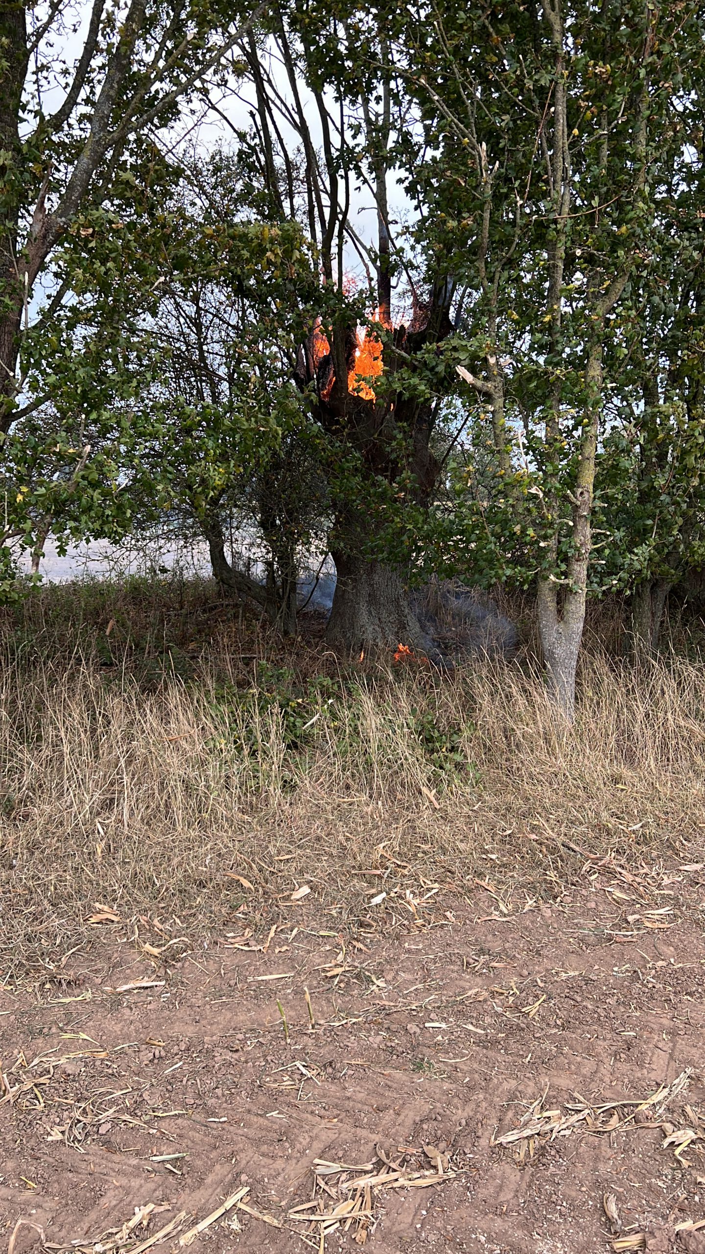 Aus noch ungeklärter Ursache geriet am Freitag Nachmittag in der Gemarkung Wienbergen, nahe dem Kraftwerk, ein Eschenbaum in Brand. Ein Landwirt wurde auf das Feuer aufmerksam und alarmierte die Feuerwehr. Durch den schnellen und umsichtigen Einsatz der Feuerwehrkräfte konnte ein größerer Flächenbrand verhindert werden. Mit rund 4000 Liter Wasser aus dem Wienberger Tanklöschfahrzeug wurde der sich schon im Vollbrand befindliche Baum gelöscht, und die Umgebung des Baumes großzügig gewässert werden. Nach einer Stunde war der Einsatz für die fünf Brandschützer beendet.