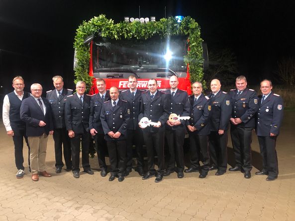 Nachdem die Gerätewarte Arne Brinkmann, Simon Bockhardt und Till Grimmelmann das neue TLF 3000 und das neue LF 20 in Alarmfahrt vor das neue Gerätehaus gefahren hatten, begrüßte Ortsbrandmeister Jan Brinkmann, sichtlich erfreut über die stattliche Anzahl derer, die der Einladung zur Einweihung und Übergabe gefolgt waren, zahlreiche Gäste aus Feuerwehrkreisen sowie Ratsmitglieder und Mitarbeiter der Verwaltung. Er sei äußerst stolz diese Veranstaltung eröffnen zu dürfen und lies im Anschluss die vergangenen knapp vier Jahre seit Baubeginn noch einmal Revue passieren. Noch vor zehn Jahren hätte er es nicht für möglich gehalten, dass das, was hier entstanden ist Realität werden könnte. Ein Feuerwehrgerätehaus welches nicht nur optisch, sondern auch in seiner Funktionalität optimal auf die Bedürfnisse der Ortswehr ausgerichtet sei und seines Gleichen suche. Hierfür bedankte er sich ausdrücklich bei dem anwesenden Architekten Dieter Kaminski und den Fachplanern. Parallel zum Bau des Gerätehauses wurden auch die beiden Fahrzeuge geplant. Hier habe man mit der Firma Magirus einen kompetenten Hersteller gefunden, der alle Ideen und Wünsche perfekt realisiert habe. Abschließend bedankte sich Jan Brinkmann bei Samtgemeindebürgermeister Detlef Meyer, dem Samtgemeinderat und der Verwaltung, namentlich bei Samantha Lohrberg, für die Bereitstellung der finanziellen Mittel und die unkomplizierte Zusammenarbeit. Die mit dem Bau und der Beschaffung der beiden neuen Fahrzeuge notwendige Planungsgruppe, bestehend aus Patrick Kather, Arne Brinkmann, Georg Bühmann, Uwe Kardas und ihm hätte viel Zeit in Baubesprechungen sowohl für das Gerätehaus als auch für die Fahrzeuge aufgebracht. Auch ihnen und ihren Familien dankte er und überreichte ihnen ein Bild des neuen Gerätehauses mit den davorstehenden Fahrzeugen sowie einem Blumenstrauß für deren Frauen. Samtgemeindebürgermeister Detlef Meyer sagte, dass es für ihn eine besondere Freude und Ehre sei, die Einweihung des neuen Feuerwehrgerätehauses und die Übergabe der neuen Einsatzfahrzeuge zu feiern, denn die Feuerwehr sei nicht nur beliebt, sie genieße auch eine herausragende Wertschätzung in unser Gesellschaft. Im Namen der Samtgemeinde Grafschaft Hoya gratulierte er der Ortswehr Eystrup ganz herzlich und bedankte sich beim Samtgemeinderat, der die erforderlichen Beschlüsse einstimmig gefasst und notwendigen Finanzmittel bereitgestellt habe. Der in 2015 aufgestellte Feuerwehrbedarfsplan sah in Eystrup eine Neubaumaßnahme als notwendig und zukunftsweisend vor, dieser Plan sei jetzt Realität geworden. Dieses neue Gebäude sei nicht nur ein Bauwerk aus Beton und Stahl, sondern ein Symbol für Zusammenhalt, Verantwortung und Engagement in unserer Samtgemeinde. Insgesamt rund vier Millionen Euro wurden in dieses Projekt investiert. Die Gemeinde Eystrup hatte im Vorwege das 10.000m² große Grundstück für 160.000 Euro erworben und zur Verfügung gestellt. Hierfür bedankte sich Detlef Meyer bei Bürgermeister Jost Egen und dem Gemeinderat Eystrup. Meyer betonte, dass es ein solches Ereignis bisher noch nie gegeben habe, ein neues Feuerwehrgerätehaus und gleichzeitig drei neue Einsatzfahrzeuge (der MTW folgt in Kürze), ein Meilenstein in der Geschichte der Ortsfeuerwehr Eystrup. Zum Ende seiner Ausführungen bedankte sich Detlef Meyer bei dem Architekten Dieter Kaminski, den Fachplanern, den Handwerkern und dem Ortsbrandmeister Jan Brinkmann und seinen Feuerwehrkameradinnen und Feuerwehrkameraden, die die Bauphase mit Geduld, Engagement und Tatkraft begleitet haben. Dieses Haus sei ein Bekenntnis zur Zukunft unserer Feuerwehr und ein Zeichen des Vertrauens in das Ehrenamt. Er wünschte der Ortsfeuerwehr Eystrup allzeit gute Fahrt, erfolgreiche Einsätze und dass alle immer gesund von ihren Einsätzen zurückkehren mögen. Gemeindebrandmeister Carsten Meyer schloss sich den Glückwünschen an und dankte ebenfalls beim Rat und der Verwaltung für das, was hier in Eystrup realisiert wurde. Der stellvertretende Ortsbrandmeister Patrick Kather trat dann ans Mikrofon und hatte eine Überraschung für seinen Chef parat, er bedankte sich persönlich und auch im Namen der gesamten Mannschaft bei Jan für seinen unermüdlichen Einsatz während der Bau- und Planungsphase, für die Umsetzung der gemeinsam entwickelten Ideen, seine Hartnäckigkeit, seine zielorientierte Arbeit, seine Zeit und seine Geduld und überreichte ihm zwei Bilder von der gesamten Wehr und dem Gerätehaus mit den Fahrzeugen. „Was lange währt, wird endlich gut“ waren die Worte von Dieter Kaminski, Architekt und Ideengeber dieses imposanten Bauwerks, der nicht nur die Funktionalität des Gebäudes noch einmal herausstellte, sondern auch betonte, das dieses Haus auch Mittelpunkt und Heimat der Ortsfeuerwehr Eystrup sein sollte. Auch er richtete seinen Dank an Rat und Verwaltung für den Auftrag und an die Planungsgruppe der Ortsfeuerwehr. Im Anschluss gab es reichlich Gelegenheit sich das neue Gebäude und die neuen Fahrzeuge von den Aktiven zeigen zu lassen. Für das leibliche Wohl sorgten an der Theke Mitglieder des Schützenvereins Eystrup und in der Wurstbude die Mitarbeiter der Fleischerei Jörg Runge. Gefeiert wurde bis weit nach Mitternacht.