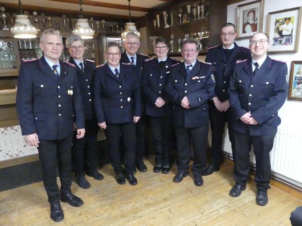 Letztmalig begrüßte Ortsbrandmeister Bernd Pfeiffer die Mitglieder der Ortsfeuerwehr Mehringen sowie zahlreiche Gäste anlässlich einer Jahreshauptversammlung im Dörpshus Mehringen. Im Jahre ihres 100-jährigen Bestehens wird sich die Ortsfeuerwehr Mehringen mangels fehlender Mitglieder und damit nicht Erreichen der Mindestsollstärke auflösen. Am 6.Juni soll aber noch einmal kräftig gefeiert werden, denn dann wollen die Mehringer Wehrleute zusammen mit der Feuerwehr Heesen, der Jugend – und der Kinderfeuerwehr den Samtgemeindefeuerwehrtag ausrichten. Nach der Totenehrung folgte der Jahresbericht des Ortsbrandmeisters. Demzufolge verfügt die Ortswehr Mehringen per 31.12.25 über 19 Aktive, davon 5 Frauen, 12 Kameraden in der Altersabteilung und 13 fördernde Mitglieder. Bei 36 wahrzunehmenden Terminen wurden 410 Stunden für die Allgemeinheit geleistet. Zu 7 Einsätzen wurden die Mehringer gerufen und nahmen Teil an einer groß angelegten Übung beim Hagebau in Hoya. 2 Funkübungen wurden absolviert und die Löschwasserentnahmestellen überprüft und winterfest gemacht. Der Ortsbrandmeister besuchte 2 Fortbildungsseminare und diverse Sitzungen im Samtgemeindebereich. Die Wettbewerbsgruppe startete in Helzendorf und Wechold. Der z. Zt. einzige einsatztaugliche Atemschutzgeräteträger führt seinen Dienst in der Feuerwehr Hoya durch. Weitere Aktivitäten waren die Gestaltung des Osterfeuers, eine Fahrradtour, die Müllsammelaktion, Altpapiersammlungen und der Besuch des Kreisjugendfeuerwehrzeltlagers in Marklohe. Aufgrund der Auflösung fand seitens der Ortswehr im vergangenen Jahr auch letztmalig die Kriegsgräbersammlung und die Kranzniederlegung am Volkstrauertag statt. Bernd Pfeiffer gab bezüglich der Auflösung weiter bekannt, dass am 5.Juni 2026 noch ein Kommersabend zum 100- jährigen Jubiläum stattfinden wird und dass Stand heute 7 der jetzigen Aktiven weiterhin den Dienst in einer anderen Feuerwehr aufnehmen werden. Im Anschluss berichtete Dieter Meyer von den Aktivitäten der Alterskameraden. Petra Guder überbrachte Grüße der Nachbarfeuerwehr Hoya, Amtsleiter Thorsten Schiemann berichtete über Neues aus dem Rathaus und Erik Meyer sowie Sven Lässig informierten aus den Bereichen Jugend – und Kinderfeuerwehr. Gemeindebrandmeister Carsten Meyer gab Informationen zum Stand des Feuerwehrbedarfsplans und beförderte Birgit Pfeiffer zur Brandmeisterin und Gotthard Schulze zum 1. Hauptbrandmeister.
