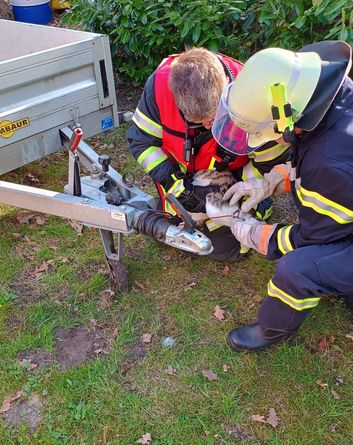 Die Feuerwehr Hoyerhagen wurde am Ostermontag zu einem nicht alltäglichen Einsatz gerufen. Besorgte Anwohner stellten fest, dass sich eine unbekannte Katze an einem abgestellten Anhänger verfangen hatte. In ihrer Aufregung zog sich das Stahlseil, an dem das Tier ging, immer fester, so dass sie ohne Hilfe nicht mehr frei kam. Mit beherztem Griff und den passenden Schutzhandschuhen gelang es den fünf Kameraden schnell, die Katze ganz ohne Werkzeug aus ihrer misslichen Lage zu befreien. Die augenscheinlich unverletzte Katze konnte in die Freiheit entlassen werden und bedankte sich auf ihre Weise, indem sie mit einem beherzten Sprung über den nächsten Zaun das Weite suchte.